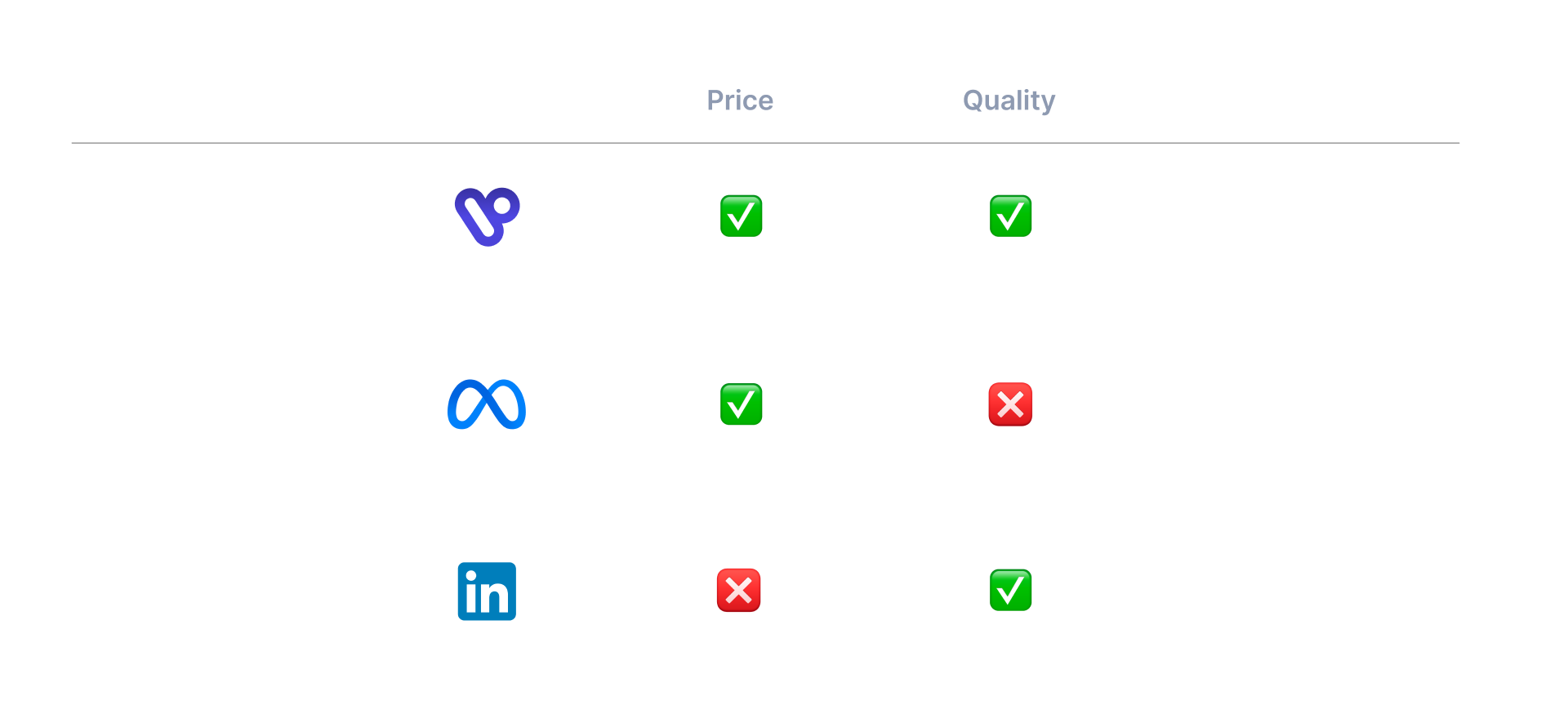 • Vibe.co: The sweet spot — Meta-level CPMs, LinkedIn-level quality, and moderate CPM.