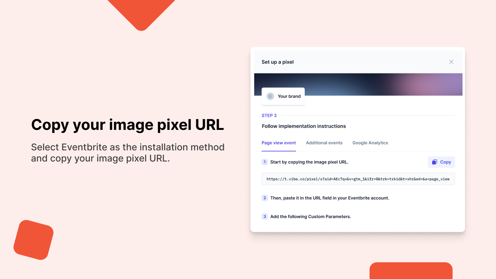 Connect your Eventbrite events to Vibe with a simple tracking pixel. Measure how your Streaming TV campaigns influence ticket sales and event attendance. Vibe helps you reach your audience on premium Streaming TV, and this integration lets you track the results directly from your Vibe reporting pages.
