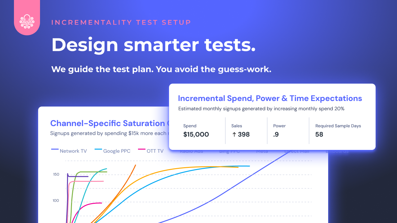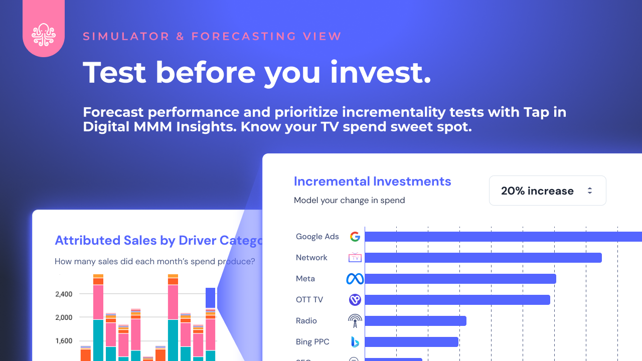 • Prioritize test opportunities using Tap In Digital’s media mix model (MMM).