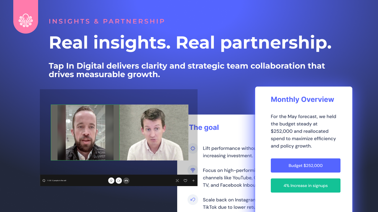 Tap In Digital helps you see the true impact of streaming TV and every other marketing channel. Our platform combines advanced attribution modeling with hands-on partnership to guide your growth strategy. From MMM-based insights to incrementality testing, Tap In Digital gives you the clarity and confidence to optimize spend across your full funnel.